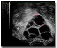 a white image on the ultrasound screen. Follicles are round sacs of fluid