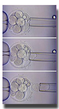 fertilized embryo. A micromanipulator is used to remove one or often two cells