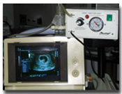 vaginal ultrasound probe with a fine hollow needle attached, is inserted into